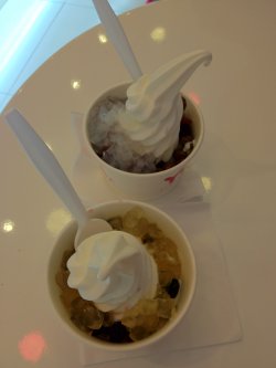 跟朋友去了龙之梦,那里有个特卖会,逛了一圈,买了一些东西,累了就过来休息下,朋友点了一个鲜果酸奶冰激凌,我点了一个仙草冰激凌红豆酸奶捞,是大份的,真的很大,容器造型很好玩,酸奶味道很浓,红豆也挺好吃,糯糯的,朋友的鲜果酸奶也不错查看更多