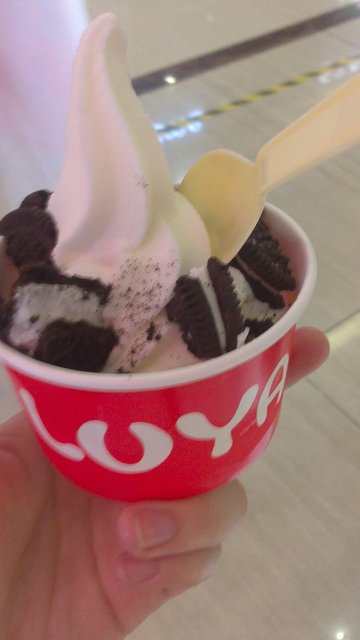 路过世纪联华的时候看到一个熟悉的洋葱头LOGO,就是LUYA咯,上次也吃过,居然这边也开了,看来LUYA的扩张之势也蛮快的。吃过午餐,肚子其实很饱,但酸奶帮助消化,吃一下也无妨,冰淇淋也就是算了。店面还蛮简洁的,看了一下选了红豆酸奶,6元,我喜欢红豆的颗粒感还有酸奶绵滑的口感,很厚实,还真的是酸啊。因为配料很多,下次带老妈一起来可以多点几种,味道不错的~