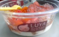 他们家的酸奶都是自制的,很新鲜的,有的的时候路过就买一个回家吃吃,味道很不错的。蛮喜欢吃LUYA酸奶坊的红豆酸奶,红豆甜甜的,里面的酸奶不是很酸,两个搭配在一起,味道很不错的。杂果酸奶,上面的杂果很多,各式的水果,都是很新鲜的,量也很多,味道不错。查看更多