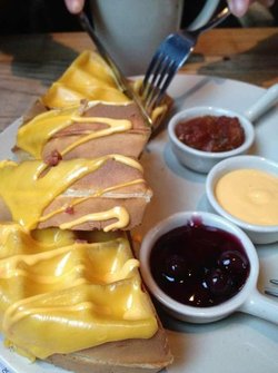 一直想吃韩式松饼,看到网上评价这家店味道不错,下班和同事一起去尝了尝,果然没让我们失望。芝士松饼外脆里松,外面裹了满满一层芝士酱,味道超级浓郁。另外还有三种酱可以沾着吃,最喜欢蓝莓酱,里面还有蓝莓颗粒,一个饼4中口味,性价比很高哦。用了会员卡还打9折,好开心哦。查看更多