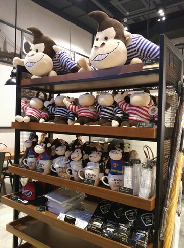 现在这家棒子国的店越开越多了啊,静安寺附近的这家,头一回去哦。 点了一杯美式咖啡,店员问我要热的还是冰的,我选了冰的。咖啡的味道,闻起来挺香的。喝一口,味道浓郁啊,加了冰也不会觉得淡。微苦,有一点小小的酸味。蛮好喝滴说。 店铺环境很暖暖的感觉,售卖的毛绒玩具很可爱。