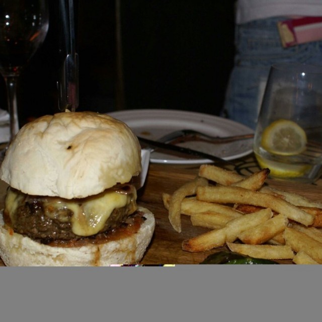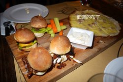 夜里的餐厅看起来有些像是酒吧,走进去空间蛮大的,而且外面还有个玻璃房,白天有太阳的时候一定很舒服。餐厅里面的墙面上,装置了很多放红酒的木架子,有些酒窖的感觉。餐厅菜单上的菜式并不多,但是很有特色,尤其是各种汉堡,光是从图片上看,就觉得很诱人。店里的汉堡有两种,最小的和最大的,其实我们就是冲着他家的汉堡来的,当然要点大的了,所以点了店员推荐的至尊鹅肝汉堡。端上来的汉堡,其实没有想象中的大,但是很厚实,两片面包中夹着的材料很是丰厚,里面除了鹅肝,还有大块的牛肉,切开之后,这厚度是张嘴也咬不住的啊。每份汉堡还配有酸味的小食和薯条,这样一份,两个女孩子吃足够了。菜单上还有一种一公斤重的澳洲带骨牛柳,也是他家的推荐菜式,看着很眼馋,可是怕吃不完不敢点,只能等下次叫多点朋友一起来尝试了。grill既然有酒架,自然也出售酒水的了,店员会根据点的菜式推荐酒水,当然也可以按照自己的喜好来了。GRILL的环境还是很安静的,晚上也不会放很嘈杂的音乐,是个适合安静吃饭聊天的地方。…ดูเพิ่มเติม