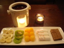 不是团购去的,所以感觉贵了点哦~和好友两个人点了一份巧克力火锅,外加一个冰激凌球~点了黑巧克力味的火锅,苦味并不明显啦,那个“小锅子”很可爱,锅底下的小火苗一闪一闪的,感觉很温暖呢~火虽然小,不过很意外的是也可以把锅里的巧克力加热到挺合适的一个温度,入口正好。配菜有水果、棉花糖、蛋糕之类的,相比之下,原本是甜的东西更能与巧克力酱和谐的融合,更好吃~我们还另加了一个冰激凌球,这个只能在锅里迅速的蘸一下,送入嘴里,然后就是很奇特的口感了,热乎乎的的巧克力里面包着凉凉的冰激凌,不一样的温度,一样的甜蜜,很有意思~查看更多