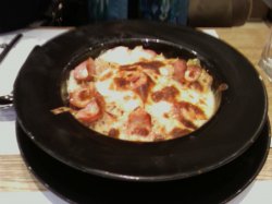 有点小资情调的餐厅,属于日系风(当然,久光楼下的店,基本都是日系。。。)。店员的服装都清清爽爽的,叉子和勺子很有特色,是本人喜欢的那种方方的、扁扁的。朋友点的秘制牛腩面上来倒是挺快,我点的果色烤肠饭是等到我快要饿晕的时候,来了!~南瓜粥还分大、小2种,上面漂了层奶油,味道清淡,吃起来还不错哦~
