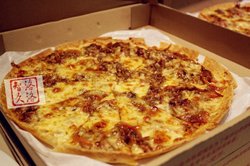 要说有人吃过鱼香肉丝披萨么,我想大多数人会有这样一个疑问,这种中西合璧的披萨会好吃吗,其实我吃到这种披萨的第一个感觉是这不是鱼香肉丝味的嘛,好奇特哦。刚开始看到披萨,上面有类似肉丝、胡萝卜丝之类的,感觉蛮奇怪的。饼底很薄很脆,上面都是酱汁的感觉,就是本帮的浓油赤酱。尝了第一口,鱼香肉丝的香味扑鼻而来,关键是芝士还能拉丝,这样的口感有点酸酸甜甜辣辣的,但也有芝士的香浓,不过这样的香味蛮融合的。我喜欢这种薄底披萨,更加有嚼劲。看到一个大大的披萨价格是55元,不贵,因为一片片的量还是很足的。推荐哦,绝对适合喜欢尝鲜的人查看更多