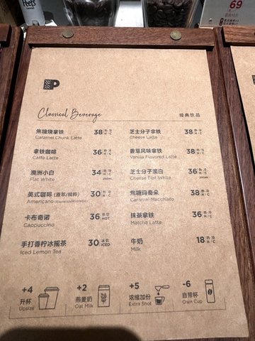 拿鐵咖啡 / 澳洲小白 / 皮爺當日精選黑咖啡 / 經典栗子蛋糕 / 芝士分子茉莉Dirty / 摘星燕麥拿鐵