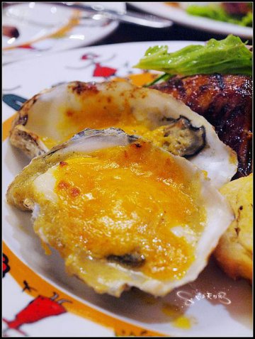 这家店是我一个老同学请客吃的.他的公司就在附近的办公楼,他说他去吃过一次的,觉得不错,就带我去了.里面装修的倒是蛮洋气的,气份也不错.他们店的烤鸡蛮嫩的还有汁水,色拉很一般.焦糖布丁这个真是美味啊,奶香味很足,就是个子小点.芝士生蚝里的芝士味道很好.…查看更多