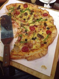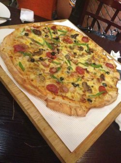 PLAZA PIZZA这家店是看了美食节目后光顾的,因为知道它家特色是巨型匹萨所以叫了三五好友一起光顾。这家店内环境非常不错,适合朋友聚会。选了它家的肉食者,皮萨饼烤得松脆,色面金黄,皮萨上面撒满了牛肉粒、猪肉粒、黑橄榄片、菠萝肉和青椒粒,使得皮萨口味丰富好吃。它家最近还有团购,所以价格也不贵。…查看更多