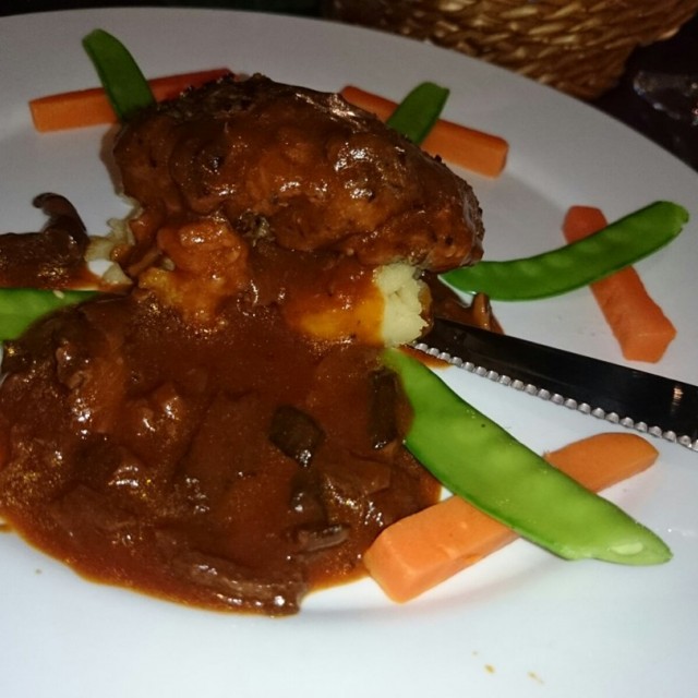 环境很好,中间还有个泳池,很特别的,这里的气氛不错,服务也好,价格也小贵了些。羊排很大也很嫩,倒是不膻气的,浇汁的味道淡了点,没什么滋味的,不过肉质确实很好。煎银鳕鱼还不错,很嫩的不腥气蘑菇汤不错很真材实料的,也很浓,蛮好喝的。…查看更多