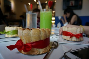 人气很高的一家甜品店啊,来吃的下午茶,感觉环境比较偏向于欧式甜美风格一点。榴莲炸弹第一次吃,个头很小,有点点的cup cake的范儿,十分精致可爱,鲜奶油中有着榴莲的味道,一口下去,唇齿之间弥漫着浓郁的香甜味道,再喝上一杯摩卡咖啡味道好极了。…查看更多