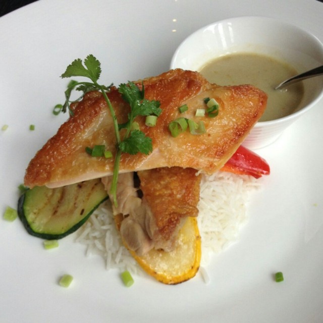 DP上看到Shook有午市88的套餐,直接定坐了,很方便哦。约了12点半12点就到了,电梯乘到5楼,小姐带到座位,吧台进去靠走道的位置,旁边是包厢式的位置,还可以看到部分开放式的厨房。菜单上可点的东西2页,还算多吧,但是有点挑不出来,冷菜选了三文鱼塔塔,味道很不错哦,喜欢吃。主菜选了素的意面,味道真心清淡哦,有芦笋,蘑菇,鲜番茄干番茄,绝对可以吃饱肚子的,吃完感觉撑到了,很很后悔,蛮好点海鲈鱼的诺。甜品只有2道,没啥花头,没有选。饮料没有选,店家没有白水提供的。面包要了个杂粮的,蘸了给的桔色和绿色的酱,味道还不错呢。环境蛮不错,吃好到前面靠窗的大桌看了下外面的风景,拍了点照片。然后又到6楼的露台参观了下,超级赞哦,晚上过来坐坐很不错呢。…查看更多
