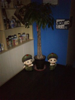 午后的周末跟朋友约相约泡咖啡馆,冬天适合发呆,适合闲聊,雨天多了丝情调,看着窗外丝丝雨丝,大珠小珠落玉盘,窝在沙发里面,暖暖的咖啡在手。忘却烦忧之事。Someday Cafe每个区域都各有千秋,墙壁上自绘的巨副油画,蓝色丝绒沙发,红白格子餐布,仿佛置身于法国巴黎大街的某个酒店。私密区VIP房间,温馨可爱就象女生自己的闺房,大大的熊,一切就象家,顿时觉得心情放松.......咖啡是小店的精髓,各色特调酒是小店的外貌,甜甜的浓郁甜品是小店的笑脸,各色简餐是小店的内涵。这不单是家咖啡馆,更多的是家咖啡小资产生活态度馆。第一次来就喜欢上了这家店。《爱尔兰咖啡》带点酒精,奶泡拉了很是地道,第一次吃到那么浓厚的奶泡。《喷火蛋糕》朋友点的所以全名叫不出来,在各大星级酒店才能吃到的火枪喷焦糖蛋糕在这家小小的店竟然也有,制作过程很NICE,喷完火再吃焦糖拌着蛋糕很丝滑在喉间。《提拉米苏》超越哦提拉米苏,好吃,巧克力味醇厚,奶味浓厚,上好的一款甜品。《鸡尾酒》调了几杯鸡尾酒,颜色可爱略甜,只是我不是爱酒之人品不来,偶外貌控一下,看到如此缤纷的酒雨天顿觉彩虹满天。《肉酱意大利面》意大利面有弹性,上面的芝士很实在厚厚的,朋友觉得味淡了些,哈哈。我口味清淡很喜欢。在咖啡店吃出了幸福的感觉!喜欢这样的小店,随心而惬意,不拘泥于内心,天马行空喝着小酒品着咖啡,谈论着各自的心情故事。Someday Cafe就是这么家有着小资情节的咖啡馆,喜欢喝咖啡的人会爱上这里的小摆设,会伸出头的小猫猫,解放军小情侣,最可爱的各色小熊,这样的店泡一个下午会让阴霾的天气变得晴空万里。