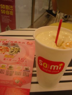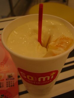 Somi出团购不少~所以乘团购买了~想试试好吃不~正好逛到吴江路有的~就冲进去了somi的店还满大的~颜色布置都不错满喜欢的~验证好很快就拿到手啦~点了黄桃芒果和黄桃凤梨~好大一杯呀……早知道两个人吃一杯就够了~味道偏甜~木有啥酸的感觉~哈哈不过就是适合偶这种喜欢甜食的人呀~化的有点快~好在化成奶昔偶也喜欢吃的~凤梨感觉比芒果好吃~于是偶抢了某人的凤梨……吃的很饱很开心~还有出团肯定再团两张~~查看更多