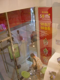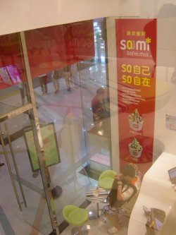 店面很醒目的 有上下2层 但冷气不足啊 昨天去的时候很热 店里生意蛮好的点的是草莓酸奶冰激凌 看得到制作过程 店员在原味冰激凌上加上酸奶 草莓酱 和薏仁再在冰激凌机器打了一下 一杯冰激凌就做好了 味道不错 就是氧的很快啊 吃的我急吼吼的~~~~~~~~~ 下次来试试别的口味查看更多