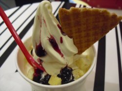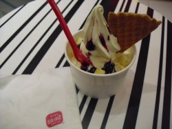 点了蓝莓珍麦酸奶冰激凌, 好吃很浓郁,就是有点像浆糊,也搞倒杯不洒,不洒是正常的,洒了不就花了么,反正很大杯,吃起来很爽做在点了吃了很久,还有很多,很值啊味道么酸酸浓浓的,就是珍麦太硬了,不软,大概刚从速冻里拿出来查看更多