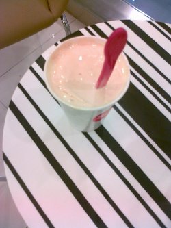 这个刚开的时候还有免费试吃的,不过那时候天冷米有吃冰激凌的欲望,还是天热了才去拔的草。味道还不错的,有点像DQ, 也是倒杯不撒,装饰的比较可爱,服务生比较热情。这家店经常搞活动,还有团购什么的,所以性价比蛮高的。还有酸奶味道的冰激凌,不是很甜腻,也蛮好吃的。喜欢里面的勺子,粉粉的颜色很可爱,另外代言人是小猪罗志祥 @-@查看更多