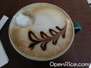 很袖珍的一家小咖啡馆子,不过店家布置的很有小情调。咖啡不算便宜,一杯中杯的拿铁25元,就是普通的马克杯大小,味道也很淡,不如星巴克的香浓,倒是上边的拉花很好看,做成树叶形状,算是很用心了。三明治30-35不等,略有些简单了,就是三片面包夹上西红柿、芝士、还有火腿等,不是很多,当早餐吃还行,但价钱又不是早点的价格了。