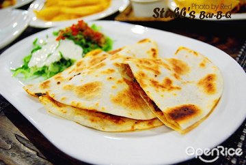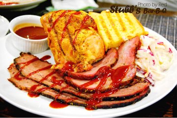 土豪请客吃饭,说是订了这家,依稀记得以前微博上有谁给我推荐过,做美式BBQ的。开在建国西路上,算是闹中取静吧,但交通不是太方便,地铁下来都有步行近十来分钟。餐厅装修很也美式,木质的桌椅,暗黄的灯光,晚上还有外籍歌手现场驻唱,氛围轻松惬意。美国菜都是以量大著称,这家也不例外,第一道色拉上桌就被惊到了,一份的量够三四个人吃了,鸡肉、洋葱、番茄、生菜、鸡蛋、培根等加入色拉酱搅拌,清脆爽口。玉米片奶酪,用玉米煎制的薄饼,松脆可口,吃的时候要伴着肉末和色拉酱一起吃,甚是满足。经典鸡翅,油炸至金黄色,外脆里嫩,有汁水,搭配三种酱料都很美味。烧烤牛肉三明治,造型可爱的迷你小汉堡,但一个吃下去还是很扎足的,中间的牛肉很酥烂,酱香味浓。烧烤三拼,当晚的重头戏,也是这家店的招牌之一,半只烤鸡,猪肉和牛肉的拼盘,作为主食三到四人分享没问题,肉都挺嫩的,关键是要配上他们店独有的烧烤酱汁,浓郁的味道让人欲罢不能。…查看更多