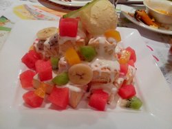 T8餐厅(乐天城店) 珞喻路6号乐天城购物广场4楼(近群光), 街道口.一家连锁的餐厅,性价比很不错,而且菜单很多菜品,选择的空间很不错的呢,吃了一个鲍汁鱼丸,感觉很不错的呢,里面有虾球还有两种口味的鱼丸,一个是墨鱼丸,一个普通白色的鱼丸,都均匀的裹着金黄色的鲍汁,很好吃哦,而且咸淡适中,开胃下饭。