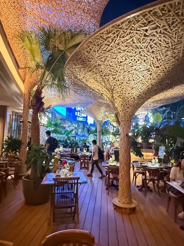 之前返深圳玩親戚帶路介紹左間充滿泰國渡假風嘅泰菜,整體充滿南洋風情和自然氛圍。餐廳內部多用綠色植物和藤編家具點綴,牆面和裝飾帶有手工藝品和異國元素,給人感覺悠閒舒適。光線布局柔和,營造出放鬆的用餐氣氛,非常適合拍照打卡📸大頭蝦冬蔭公湯係泰古蓮嘅招牌菜之一,用料足、酸辣味好平衡,好多食評都推介必叫。湯底以香茅、南薑、青檸等熬成,酸香開胃炭燒泰式豬頸肉,豬頸肉部位油花豐富,肉質嫩滑又有口感,加上炭燒帶來嘅獨特煙燻香氣,增添層次感。炭火燒製令外皮微焦微脆,內裡保持多汁嫩滑,烤得恰到好處~古法咖哩大頭蝦,香料由主廚親自選用泰國空運香料,並用石臼手工研磨,使咖哩味道濃郁且層次豐富。大蝦鮮甜彈牙,咖哩醬鹹中帶甜,完美包裹著蝦肉,非常好餸飯😋菠蘿海鮮炒飯,炒飯粒粒分明且充滿鑊氣。海鮮部分份量足夠,新鮮蝦仁、魷魚和其他配料與菠蘿的甜香完美結合,飯粒吸收了菠蘿的自然果香,令整體味道清新又帶點甜味,吃來不膩🤤焦糖菠蘿配雪糕,菠蘿新鮮多汁,外層裹上香脆焦糖,熱騰騰上桌後酸甜果香四溢,完美平衡熱冷口感~雲呢拿雪糕入口即化,奶香濃郁,與焦糖菠蘿的微脆和果汁形成強烈對比,吃落層次豐富,解膩又滿足,非常適合餐後收尾🥴…查看更多