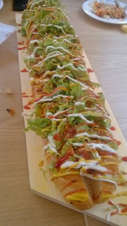 这个是六,七月份的时候参加的人家的试吃活动,本来应该回来就写贴子的,结果一忙起来就直接忘后脑勺去了,要不是最近整理照片,根本就想不起来这回事了。他们家地点是在北一路万达侧面那条街上,靠近广场的这一面,以前因为积分兑换去喝过咖啡,这回是第二次去了。晚上五点半的试吃,因为天气热,所以店家就把桌子摆在了外面,吹着小风,吃着美食感觉真的很惬意啊。上餐之前我们先对店里的环境参观了一翻,得到大家一致好评的就是三楼的那个榻榻米,可以趟在上面一边吃东西,一边看电影,真是太舒服了,可惜就是位置比较少,如果想要的话,就必须要提前预约下面说美食的,因为时间久了,反正就是想到什么说什么吧,饮料有二款我是记住了 ,一款是玫瑰米酒,我本来是不喝酒的,不过这款饮料到是没有什么酒的味道,非常的好喝。另一款蓝色的饮料是柠檬蓝甘,大概是这个名字吧,那天得到了不少人的青眯,不过萝卜青菜个有所爱吧,就我个人而言,反而比较不喜欢,觉得太酸了,要是不放柠檬就好了。之后的主食有焗饭,热狗,还有意大利面等。其中给我印象比较深的就是他们家的手臂热狗,一份差不多有手臂那么长了,四五个人分着吃,材料非常的丰富,热狗里面的肠也特别好吃,感觉用的都是好肉,口感特别的好。最后有两道菜一个叫加乐比宝藏,就是一个大面包里面放的各式海鲜,另外一个叫保卫钓鱼岛,应该算是一个甜品吧,外皮是哈蜜瓜。总体来说是一次比较成功的试吃吧,他们家的食物都是挺有特色的,环境也不错,有机会还想还朋友一起去尝尝。…查看更多