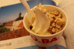 YOBA家的酸奶冰激凌喜欢原味的,有点酸酸的,不是很甜,吃多了不腻,因为是用酸奶做的原料,也是比较健康的。还可以依照自己喜欢,搭配一些配料,如,蓝莓,水果,果肉,巧克力什么的,味道会更好吃的。他们家的鸡蛋仔也是蛮好吃的。查看更多