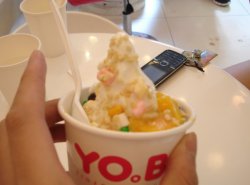 那么热的天,本来想不怎么出去了,一看到YOBA微博中奖的去吃冰激凌,突然激动~~真的想去吃吃冰激凌和冰激凌月饼啊。虽然这里已经去过了很多次了,可是这次没有想到再次光临这里是YOBA邀请我的,真的是太激动了。在西藏中路的地方,有一个类似老上海的店铺类的地方,石库门的房子让我们更加像是穿越回到了上世纪初上海70、80年代。店面虽然不是很大,但是非常适合下午品茶喝着下午茶呢。 (时隔那么长时间不知道YOBA会不会变呢……)一走进眼帘,就是YOBA的许愿墙,上面挤满了大家的愿望和对YOBA 的建议和意见,貌似一圣诞树~这么一来大家有什么悄悄话就可以对着YOBA的许愿树来讲,不管是满意的还是不满意的,在这里敬请自由评论。料理台一直都是许多MM们的最爱,许多人都是为了冰激凌料理而来的。这里的料理有些名字很有特色——比如“恐龙蛋”就是外面糖衣里面有点像糖果的感觉,“可可球”名字真可爱~“小雨点”其实就是小小的巧克力粉磨,最有特色的就是“爆爆珠”就是咬上去里面有浆水出来的,口感很特别。冰秀茶 也是这里的特色,听说还是电视台《人气美食》的介绍产品——这里的人气TOP5的产品呢。进入活动环节:产品1:月饼的试吃——月饼颜色显眼。主要的是吃到了上海独家的“酸奶冰激凌月饼”真的是冰激凌超级甜蜜而且月饼皮也是相当的糯.有巧克力皮和糯米皮的,巧克力皮的口感很甜,里面的冰激凌口感相当纯正。个人喜欢抹茶口感,抹茶的香味在嘴中“曼妙”开来了产品2:DIY冰激凌——奶油十分的香浓,冰激凌可以吃的出来酸酸的奶油味道,而且冰激淋DIY也是这次最喜欢这个环节!可以选择自己的配料,我选择的是棉花糖+巧克力珠+少许芒果+杏仁+的组合,棉花糖的口感很软软的。而且酸奶的口味和巧克力的口感相互融合,交融的比例和恰当。产品3:品尝鸡蛋卷最鸡蛋卷也是相当的香,面粉也是相当的浓郁。而且可以一边蘸着冰激凌一边吃,趁热吃的口感真的很棒,鸡蛋的口感很对奶油的口感哦~吃过以后还是奶油+鸡蛋味道十足的,很喜欢奶油+鸡蛋的口感。没有想到再次光临YOBA 让我得到这么多的惊喜啊。听说,YOBA冰激凌月饼的上市就等待今年中秋的到来了~总体来说这次给我最喜欢的就是DIY冰激凌环节了,因为可以选择自己以前没有吃过的料来制作。介绍的月饼也是很棒的,不过希望以后可以给我们多尝试下别的口味,这次尝试的口味貌似有点太少。这里有一个小贴士:配料不是越多越OK,因为一旦配料太多,酸奶的浓稠度和冰激凌的口感就不能融合起来了,而且容易让人产生喧宾夺主的感觉。而且在选择配料的时候可以选择甜度适中的,酸酸的配料应该适可而止,因为酸奶冰激凌本来就是酸的。…查看更多