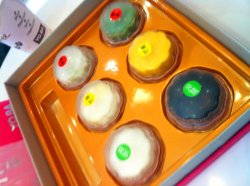 五颜六色的月饼真好看~~现在都是冰淇淋月饼了~