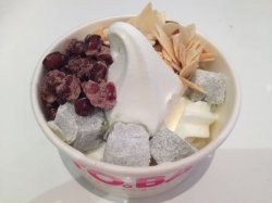 低脂、低糖、低热量的yoba酸奶冰淇淋是众多人所喜欢吃的,到虹口龙之梦去逛街,看到它家,正好自己有几张券,就进去尝尝,看看它家出了不少新品,有酸奶布丁、手工酸奶等 ,不过我最喜欢吃的还是酸奶冰淇淋,平时一直吃原味的,这次想换个口味吃吃,服务员介绍,有芒果味的,这个口味没吃过,就吃这个口味了,挑了小杯的,再加了点干果蔓越莓干,正好20元/杯,蔓越莓干酸酸的吃的蛮开胃的,芒果味的酸奶冰淇淋,没有什么芒果口味的,没有原味的口感好,下次还是选原味的吃,呵呵。查看更多