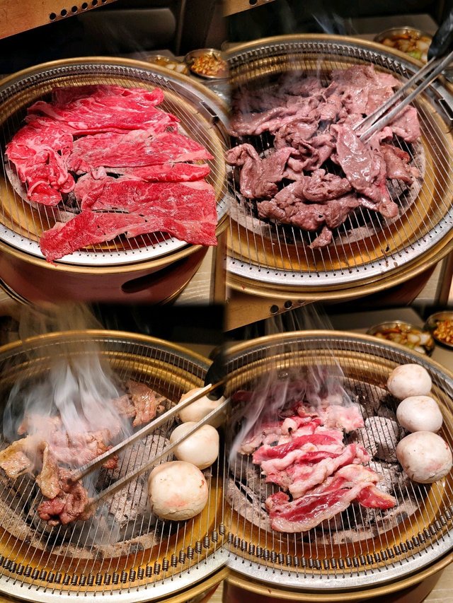 拼盤食物包括:雪花牛大力、雪花牛肋條、牛舌、橫膈膜及口蘑。每天新鮮送來吃,色澤紅潤的賣相,不用放太多調味也吃得到鮮味