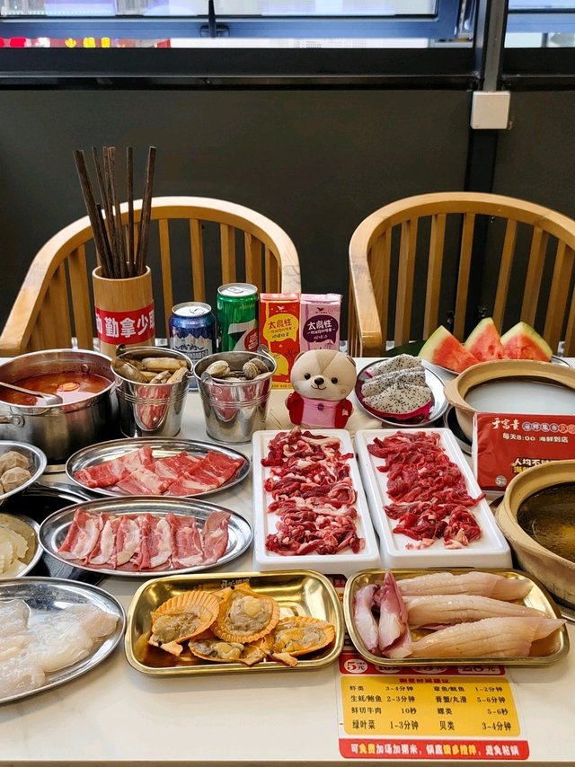 1.5小時任吃吃到飽,我們在午市過後到來,仍然人頭湧湧欵。這裡科食物選擇算是多,吃的飲的也有多款。食物包括海鮮、鮮切牛肉、小吃、葷菜、素菜、熱菜、炸物、火鍋配料、蔬菜、水果、甜品及飲品。