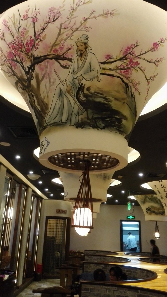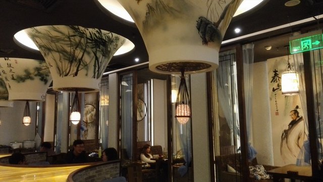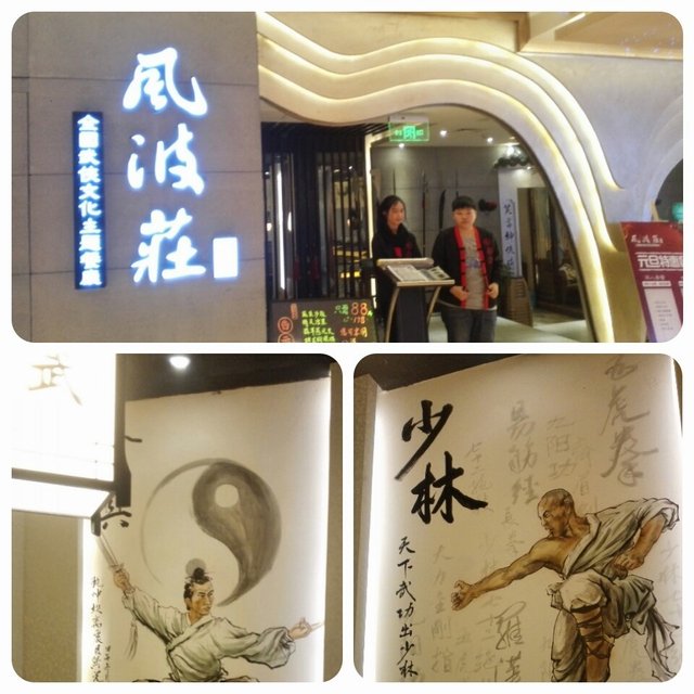 这一家风波庄开在时代天街C馆,五楼A馆通往C馆的连接处,装修风格是简朴的武侠风。服务生也是古装装扮,迎来送往也是武侠用语。