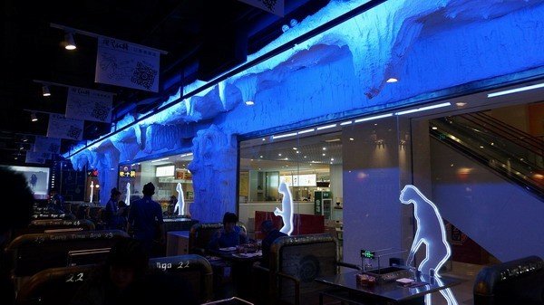 靠窗的位子感觉像冰河年代,还有从类人猿到人的演变过程图画,看着感觉又过去了千年,是穿越了吗?