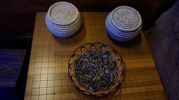 吧台虽然时尚但是也是点缀在石头和木墙的背景之上看着也和店里的主题一致,把红酒和高脚杯衬托得耳目一新! 围棋和一盘瓜子是等位的消磨工具,不过这里不是周末是不需要等位的。