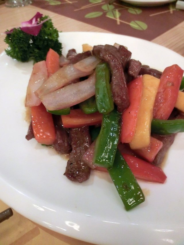是會帶有一點點甜的。有牛肉、青椒、茄子豆角等。撈飯吃還不錯。