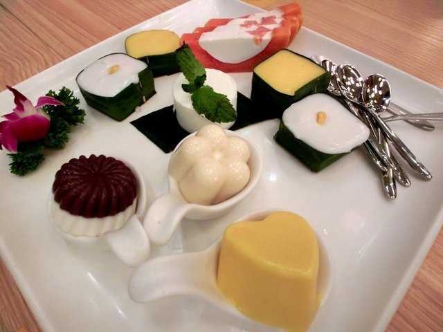 有椰汁西米糕、慕斯、榴蓮布丁、芒果布丁等等。