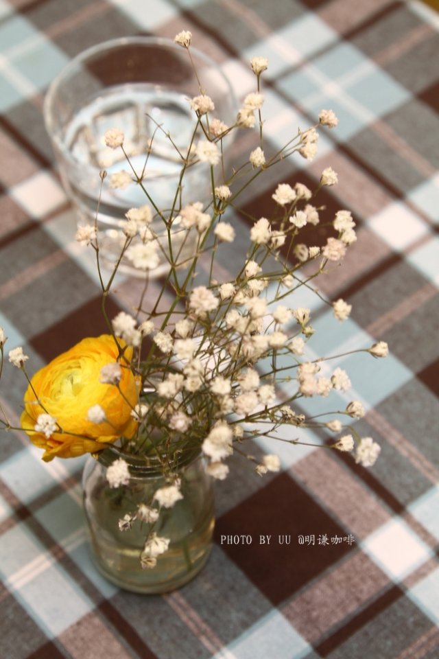 格子桌布,桌上的小花,好多喜欢的元素这家都有~~