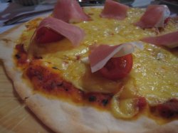 主菜:巴马臣春鸡配烤番茄及火箭菜,M点的,这个名字还真难记,很大块的鸡块哎~香香的,里面还有烤土豆,烤茄子,嘻嘻~突然想吃烤肉了,我喜欢那个烤土豆的口感