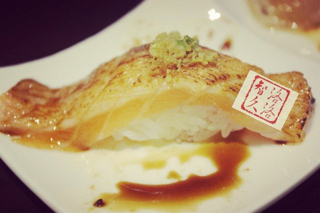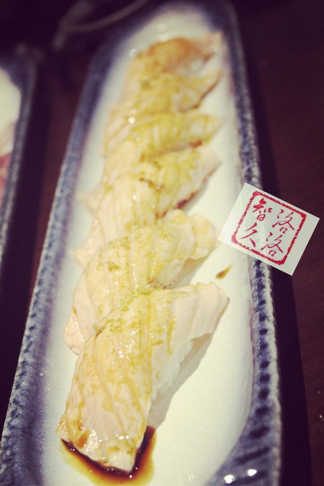 寿司桌边秀,樂亭家的特色之一,臺灣壽司第一人張總親自表演壽司的高超技藝,果真是將壽司的味道發揮的淋漓盡致!左口魚sushi,炙火三文魚sushi還有火龍果sushi,都很棒,米飯捏的適度恰好,米飯與魚生之間夾雜著wasabi,很正宗的手法!再用火槍噴下,去除油脂,食用起來更健康美味!魚生入口即化的口感,令人回味不已~