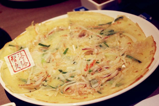 還有海鮮蔥餅,內附魷魚海鮮類,所以蔥餅一定要趁熱品嘗,吃口還是很香的~