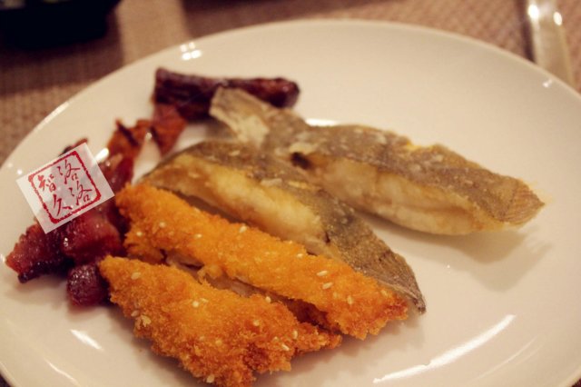 炸物也很豐盛的,有些偏日式的,有天婦羅,有炸豬排,炸魚什麼的,洛品嘗了炸豬排,豬排的品質不錯,外層也炸的很脆的~
