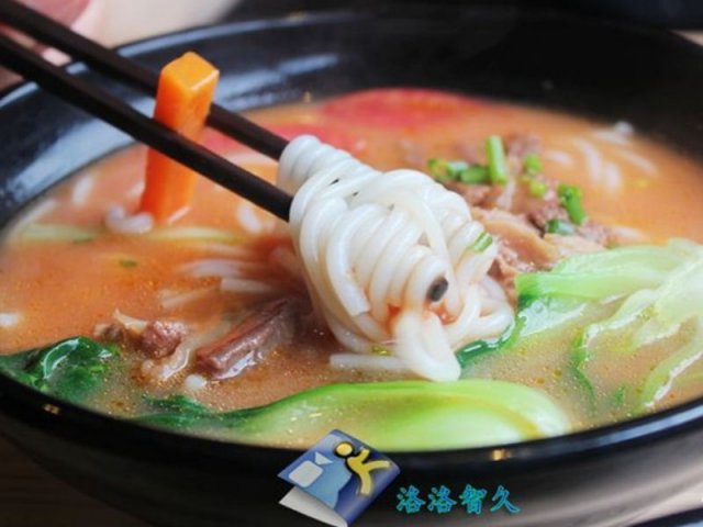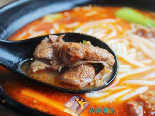 11点半到达餐厅~洛爸与洛吃的是麻辣牛肉粉,洛妈吃的是茄汁牛腩粉~
