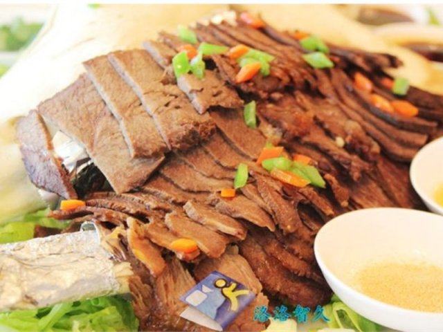 牛气冲天,很大的一个盘,牛头的骨架半个,占了大半个盘子,牛肉切片的厚度恰到好处,牛肉片很鲜嫩可口,沾些配制的sauce与椒盐,味道还不错,充分体现了牛肉片的原汁原味~