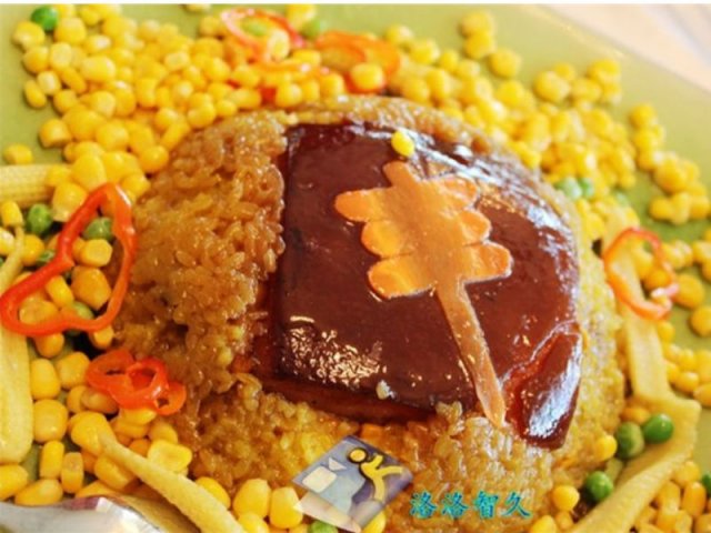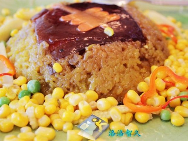 五谷丰登,选用了五花肉、糯米、玉米粒蒸煮,有些像扣肉的烹饪手法,五花肉入口即化,口感香糯可口,肥而不腻~糯米吸收了五花肉的肉汁味,吃口很糯滑~