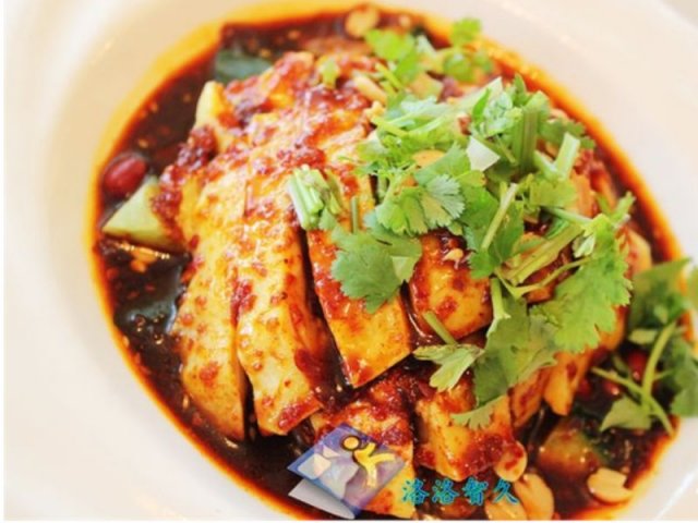 口水鸡,鸡肉的份量不算多,感觉冰镇过了,下层铺了若干切得厚厚的黄瓜片~鸡肉浸渍了辣椒汁,使得味道更加麻辣鲜香嫩些,鸡肉口感还是蛮嫩的~