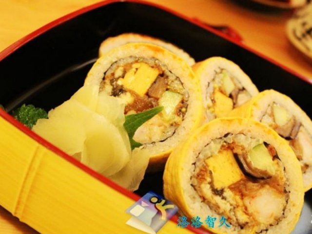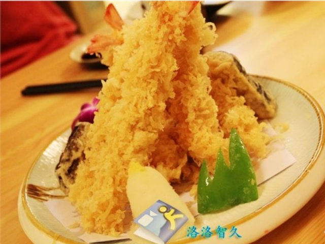 明虾天妇罗,明虾个头标准,可以算是天妇罗虾里的极品了,外层香脆,里面的虾肉饱满,单吃的话也不油,但洛还是喜欢沾些萝卜泥酱汁一起吃,正好解腻~