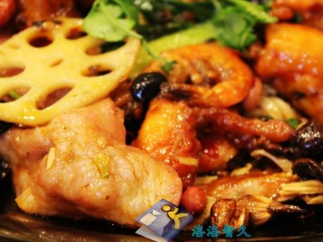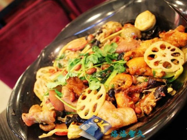 干锅内的食材多,有些新鲜度尚可吧,锅内的香料还是很多的,蛮独特的味道!自然了仍旧喜欢干锅内的金针菇,每一个食材都吸收了香料的味道,很入味~香肠,鸡腿肉都蛮不错的~丸子的品质一般般~