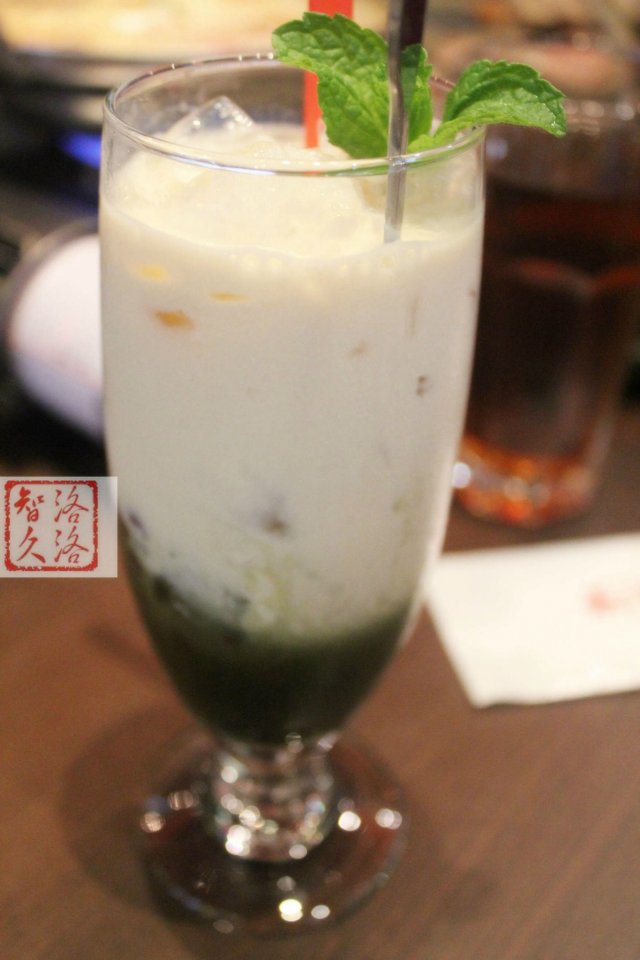 飲料,洛要了一杯烏龍茶,還要了一杯抹茶豆乳,抹茶豆乳在套餐的原價格上再補4大洋~