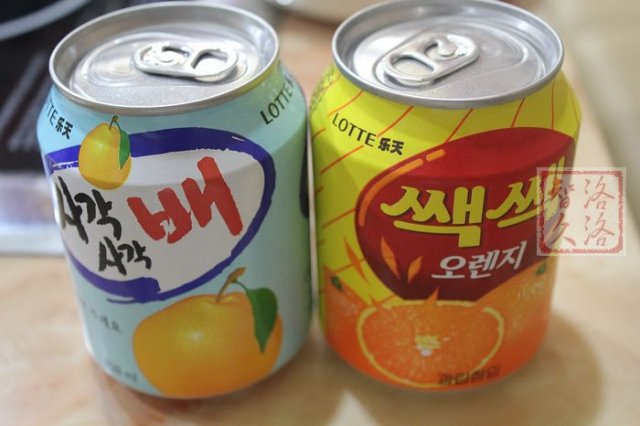 饮料选择了橙汁与梨汁~店家说都是韩国进口的饮料,看了下,是乐天这个品牌的~随便喝喝吧~毕竟吃辣年糕,配些清爽饮料还是很关键的~