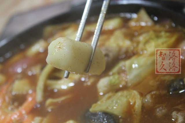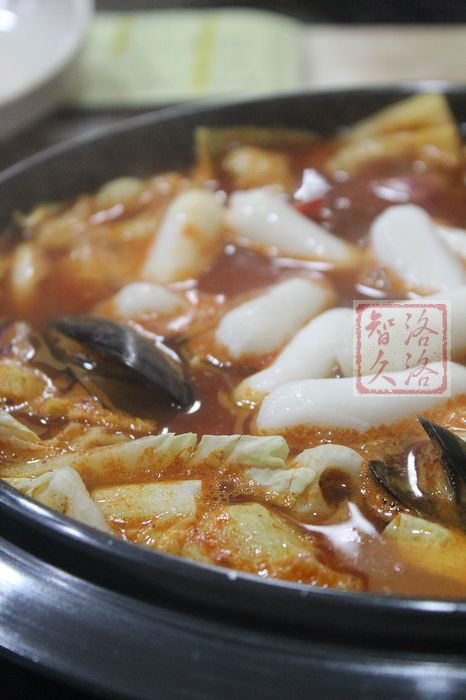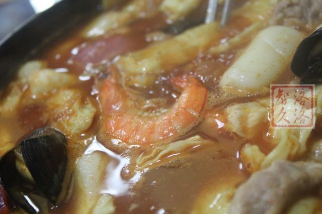 锅内的食材还是蛮丰富的,有青口贝,虾,烤肉若干几块,份量不是很多~还有大白菜,竹轮,年糕等等看上十分的丰富~洛点的是微辣的口味,初尝轻微的辣味夹杂着细微的甜味,味道倒还行~